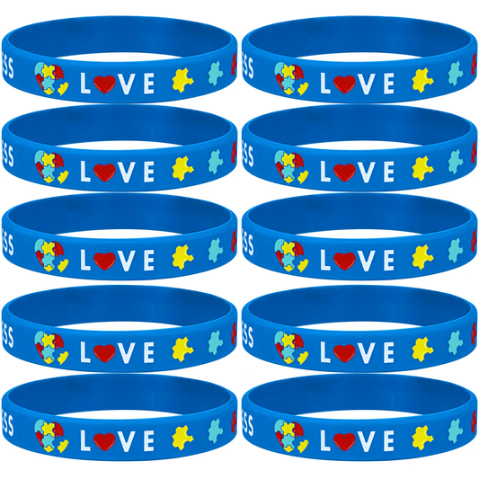 5/10 pcs Autism Silicone Bracelets for Men Women, 12mm Soft Rubber Silicone Love Puzzle Autism Awareness