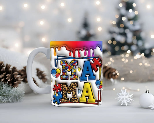 3D Mama Autism Inflated Mug Wrap, Heart Autism Puffy Mug Wrap