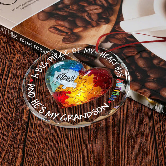 A Big Piece of My Heart Has Autism - Personalized Autism Awareness Round Shaped Glass Ornament