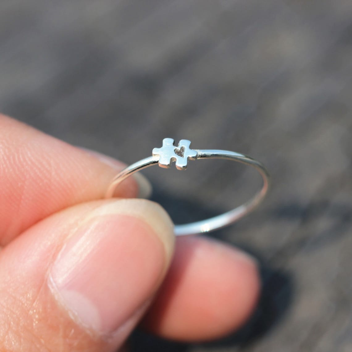 Autism Awareness Silver Dainty Puzzle Ring With Heart